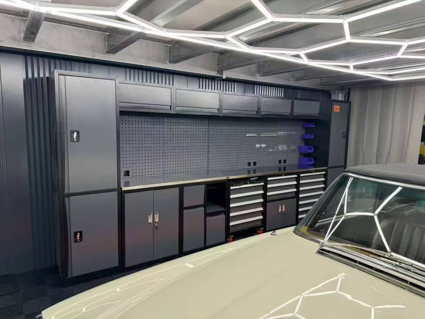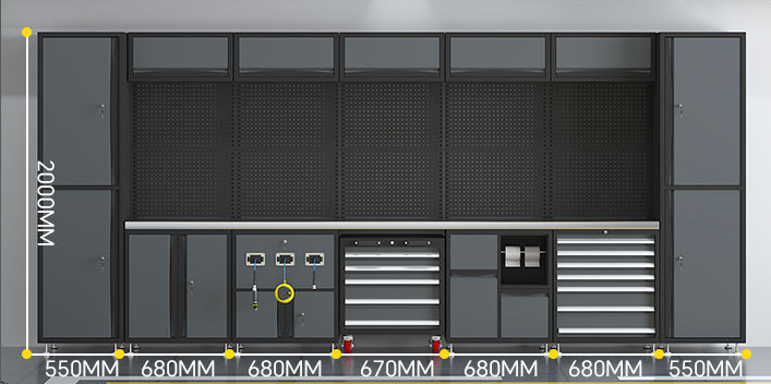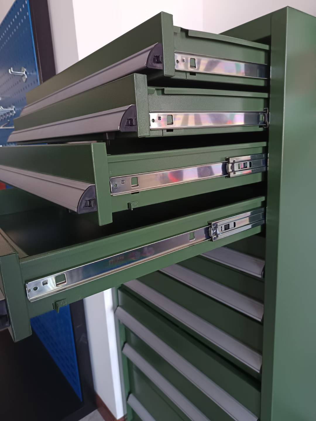 1.0-1.5mm cold-rolled steel + epoxy coating: rust-proof, impact-resistant, 300kg+ load capacity for heavy tools